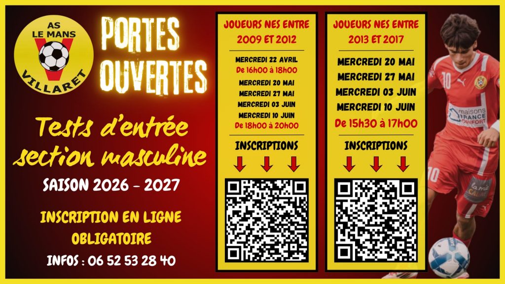 | 16h00 | U 18 ans Féminines B | Le Mans Villaret - GJ Bocage Manceau (1-3) |